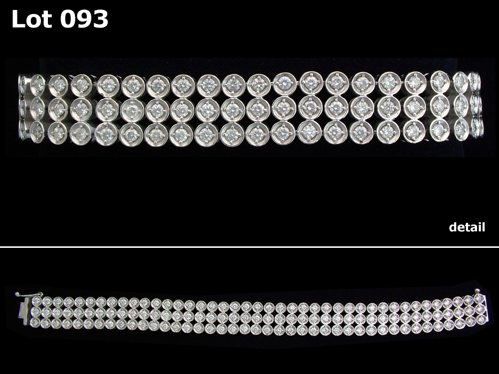 BRACELET: Gents 14kw illusion set diamond link bracelet; 3 row motif; 123 rb dias, 2.6mm = est 7.38cttw, Fair-Good/H-J/I1-I2; 14.03mmW x 5.29mmT x 7.9 inches long; 82.79 grams.