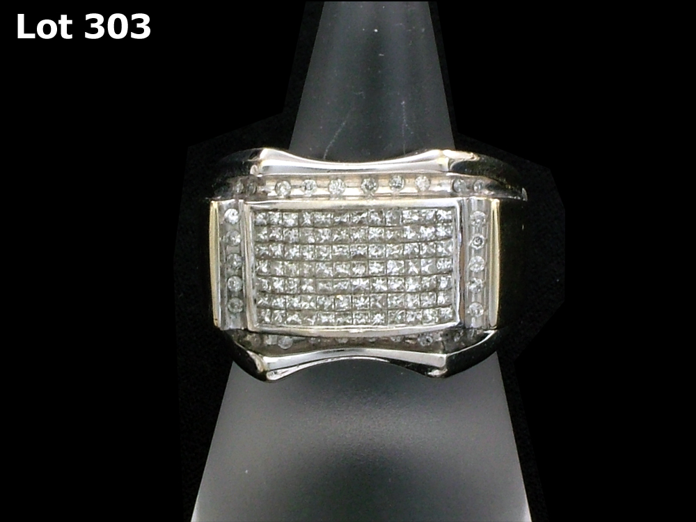 RING: [1] 14KWG ring set with 30 round & 84 princess cut dia.s TWA 1.75 cts H/I SI2-I1, size 10; 19.5 grams.