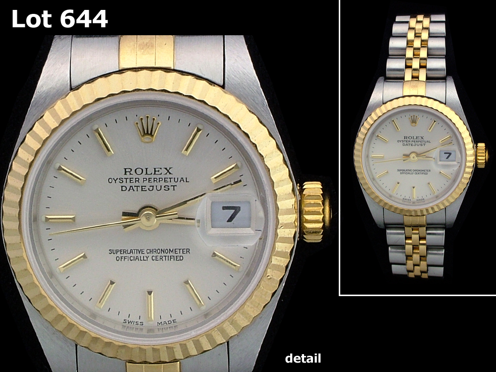 WATCH: [1] Stainless Steel & 18KYG Rolex Oyster Perpetual Lady Datejust watch; model #79173, serial #P645601, movement model #2235, movement serial #4 0393867.