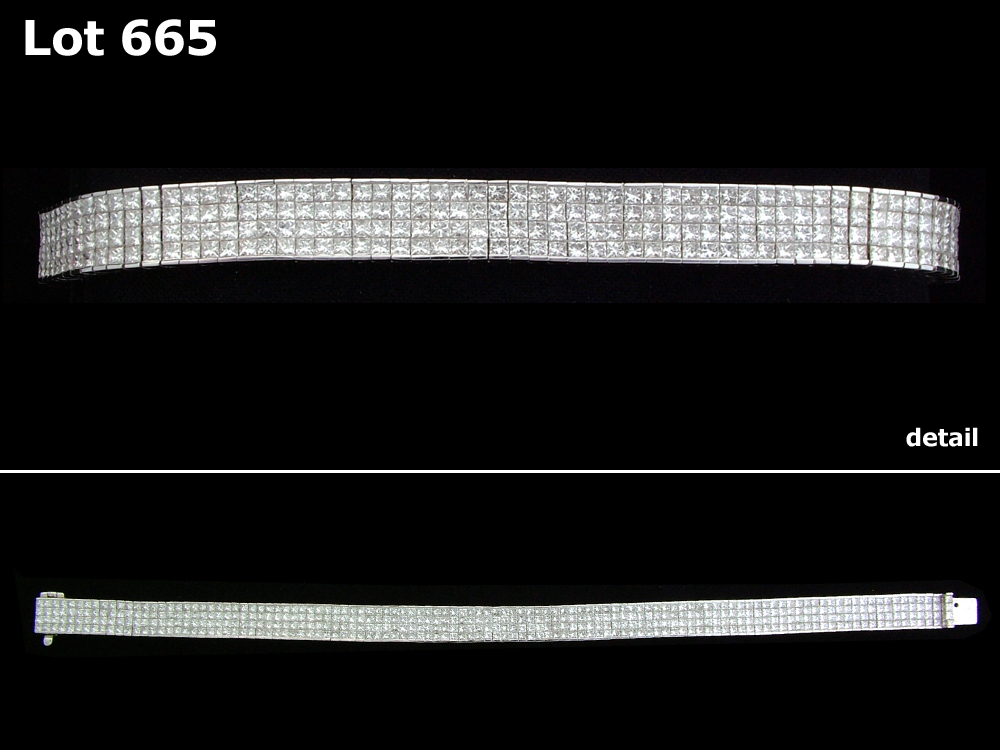 BRACELET: Ladys 14kw 'invisible' set link bracelet; 412 sq prin dias, 1.7mm to 1.8mm = est 12.77cttw, Good/G-H/SI1-I1; LT tdmk; 39.59 grams.